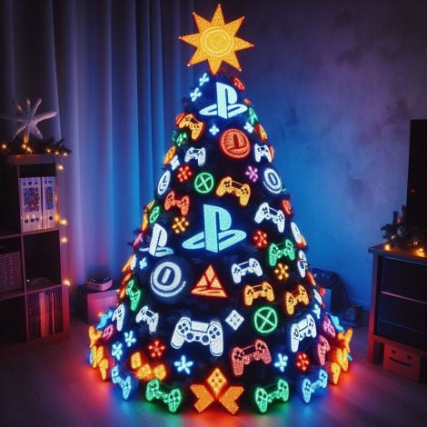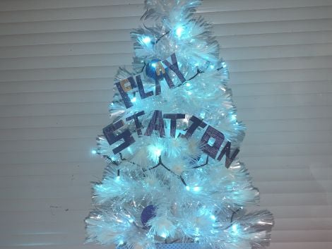 Du noir, du blanc et du bleu, des guirlandes, des références à l'univers de PlayStation - tout est à prendre pour créer le plus beau des sapins PlayStation !