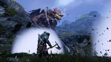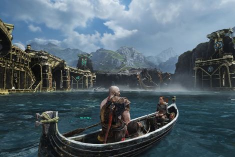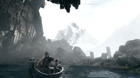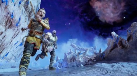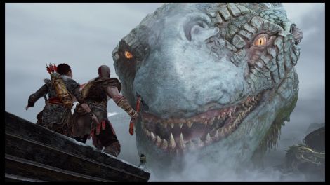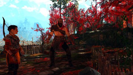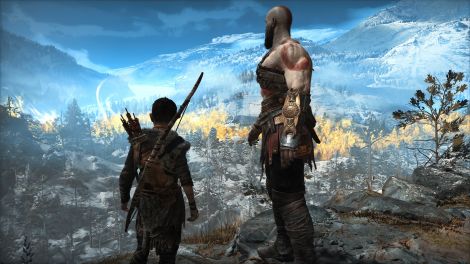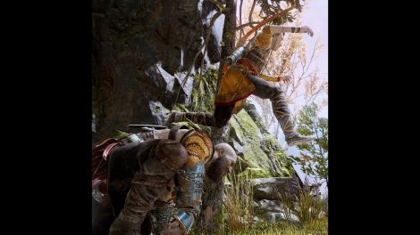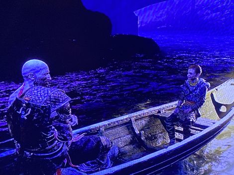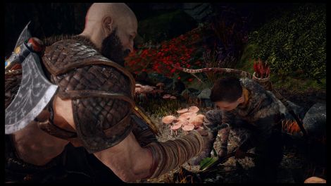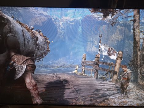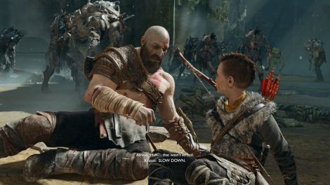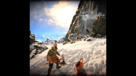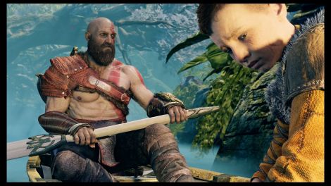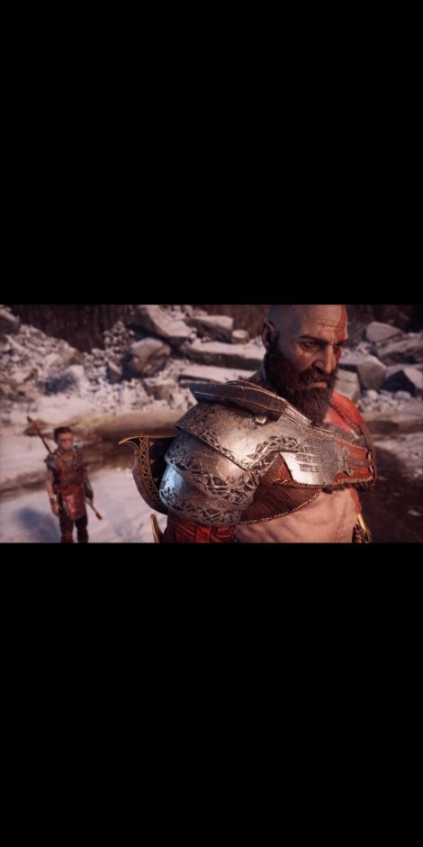 Postez une capture d'écran de God of War (2018) mettant en scène Kratos et Atreus,et légendez-la en commençant par «Mon père et moi quand...».